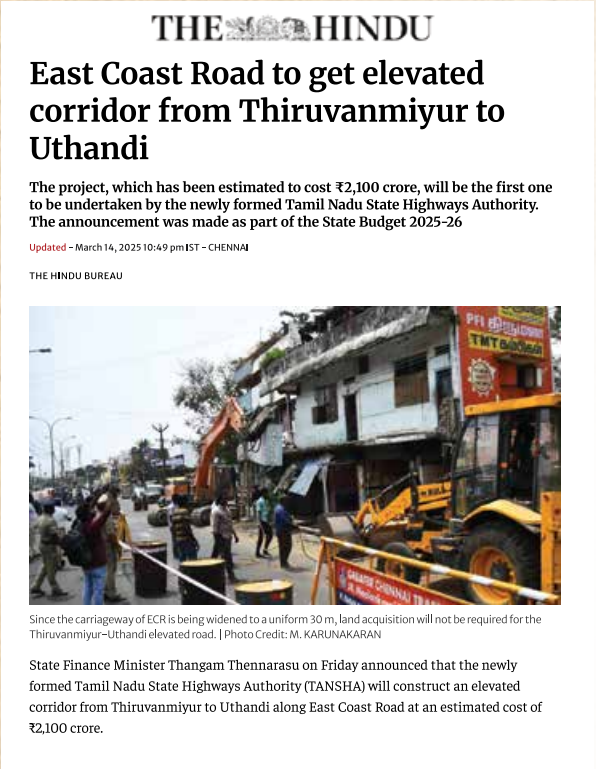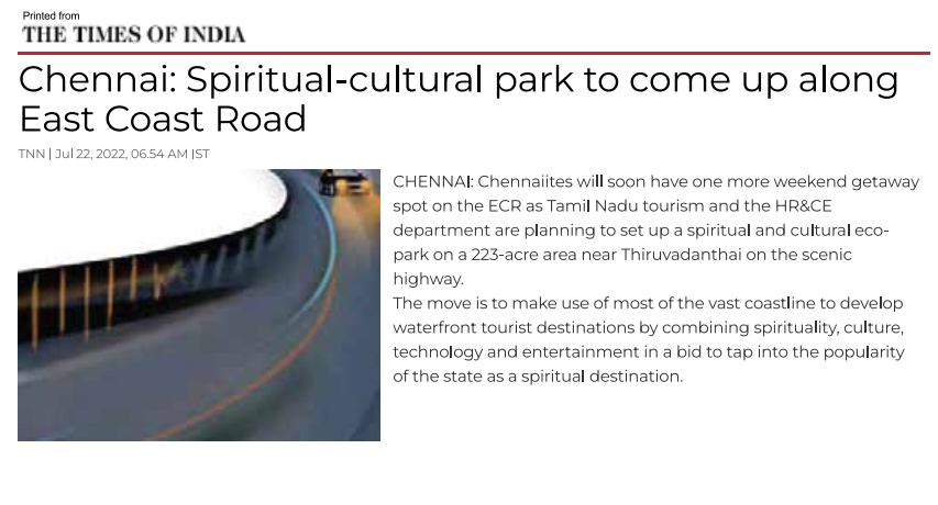 • Eco-tourism and coastal resort corridor development by TN Govt.